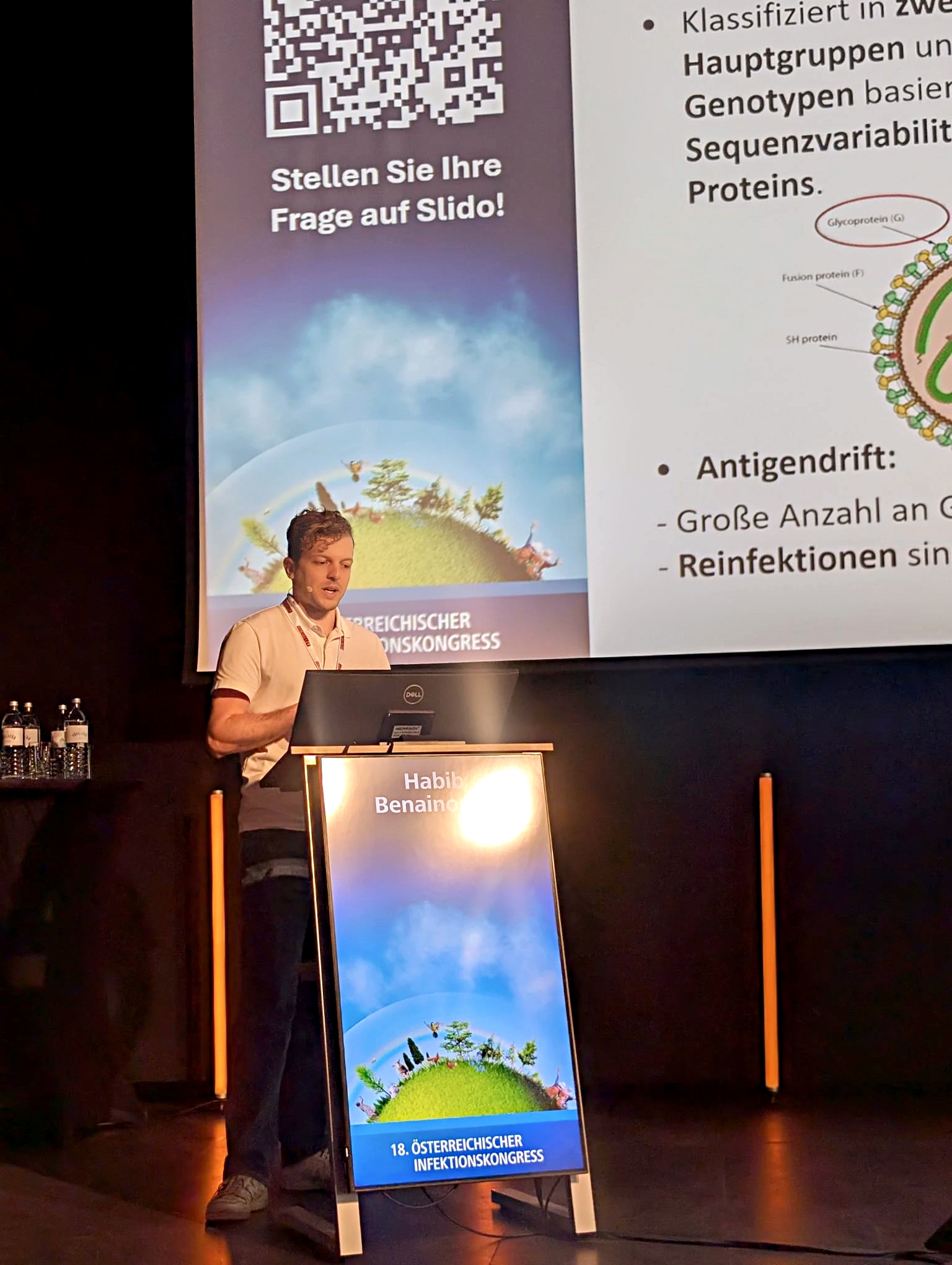 Habib Benainouna, researcher at the Institute of Virology Innsbruck, has been awarded 3rd place for Best Presentation at the 18th Österreichischer Infektionskongress (ÖIK), organised by the Austrian Society for Infectious Diseases and Tropical Medicine (OEGIT). His abstract was selected among the five best submissions to the congress, and following his presentation the work was ranked third overall. The award was presented during the evening ceremony.