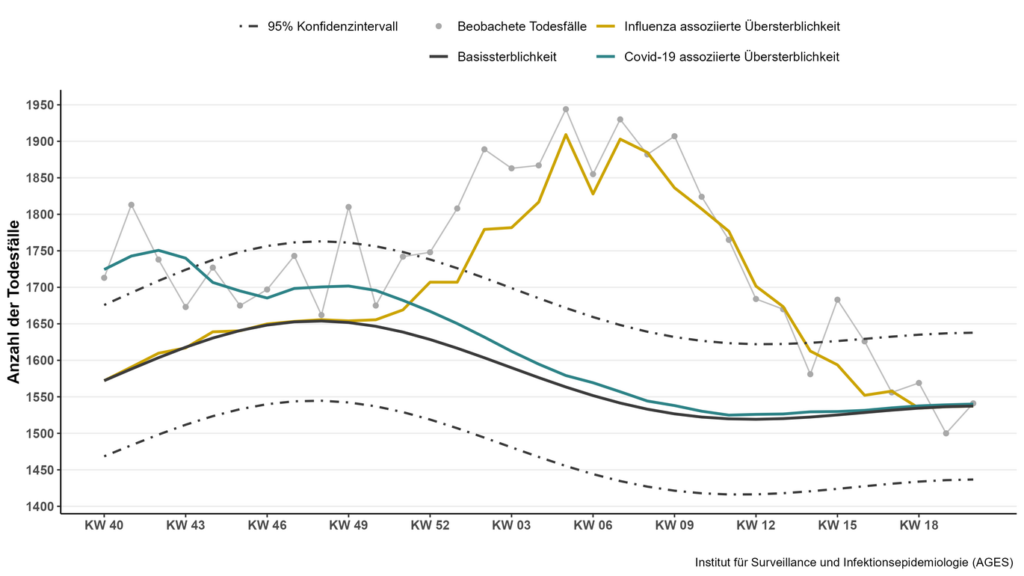 Ein ungewöhnlich früher Beginn der Phase von hoher Influenza Aktivität ab KW49-50/2025 und intensiver Verlauf mit deutlicher Influenza-assoziierter Übersterblichkeit (Abb. 2) stellte das österreichische Gesundheitswesen vor erhebliche Herausforderungen in den letzten 12 Wochen. Betroffen waren und sind alle Versorgungsbereiche – von niedergelassenen Ordinationen über Spitalsambulanzen bis hin zu Normal- und Intensivstationen. Das bisherige Infektionsgeschehen wurde von der Influenza A Variante H3N2 dominiert (etwa 70%). Auf Influenza A H1N1 entfielen knapp 30% (2).